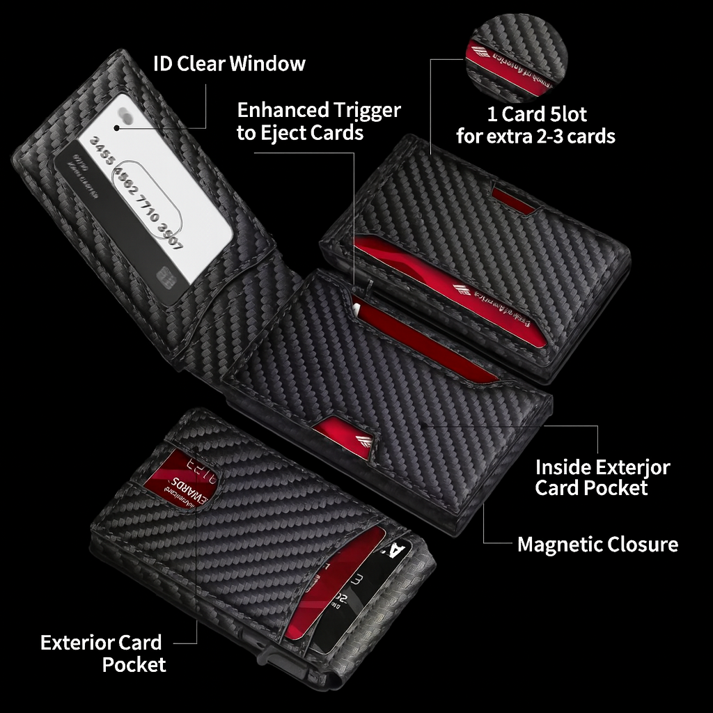 Up to 10+ cards without bulk.5–6 in the pop-up core, more in outer quick-access slots. Everything stays tight and organized.