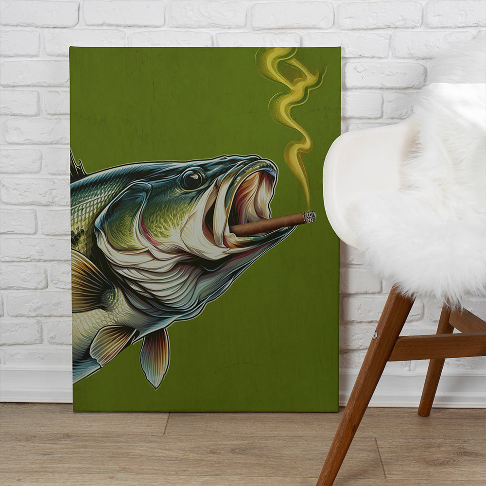 Be the first to review “Bass Smoking a Cigarette Vintage Fish Art Canvas”