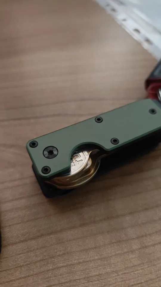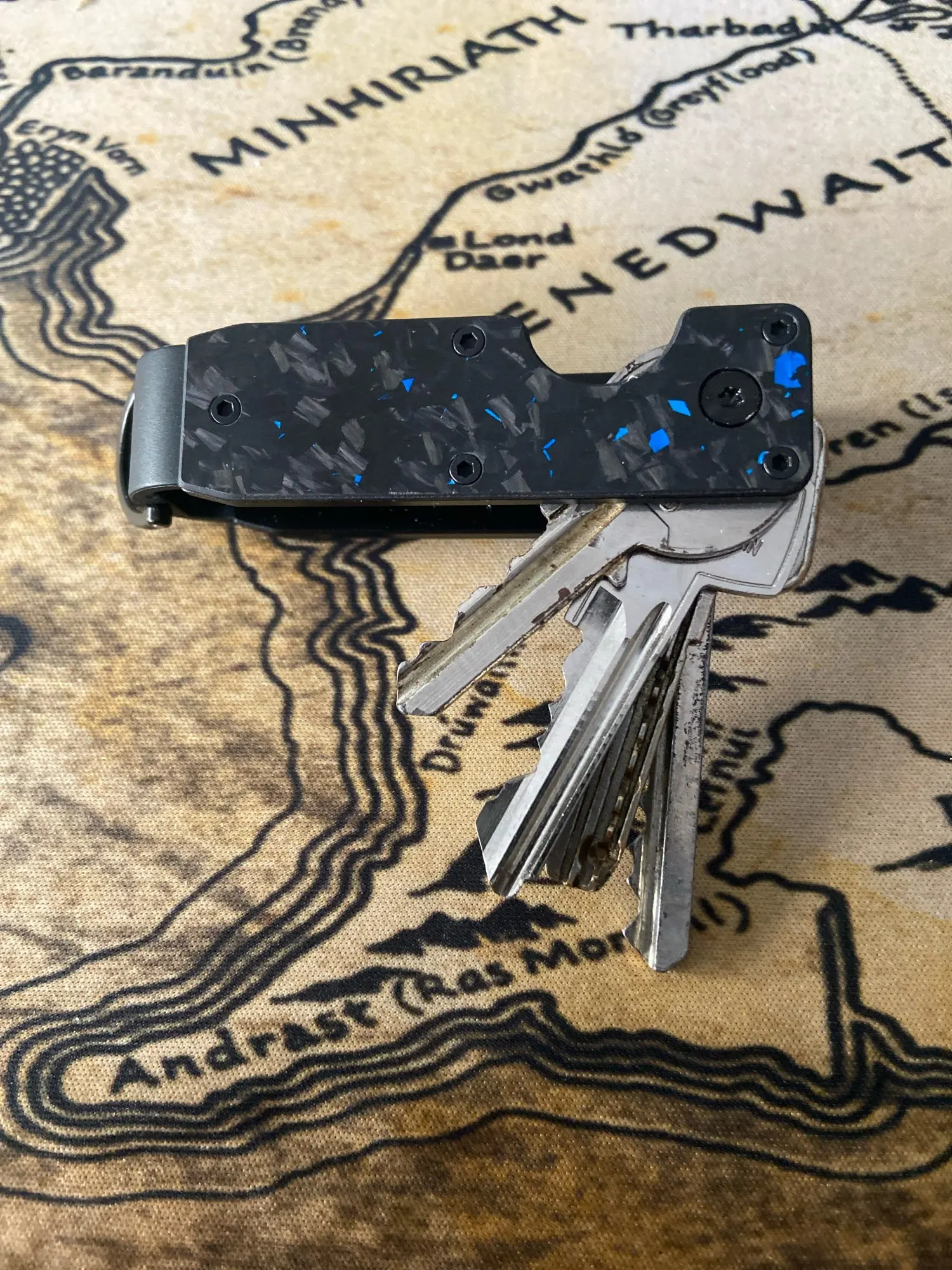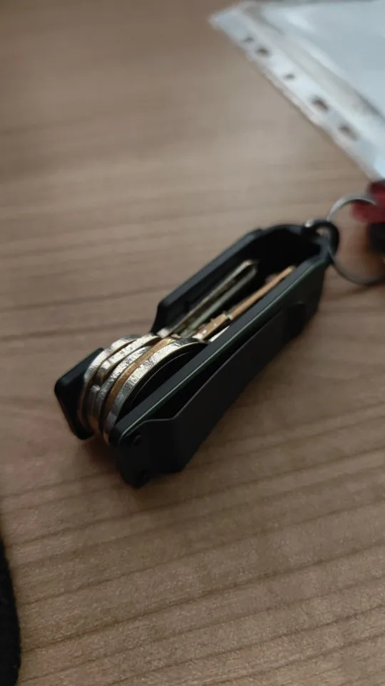 I like the carbon fiber look. Cards stay secure, and the trigger mechanism is smooth. Would love a slot for coins, but I get that it’s made to be minimal.